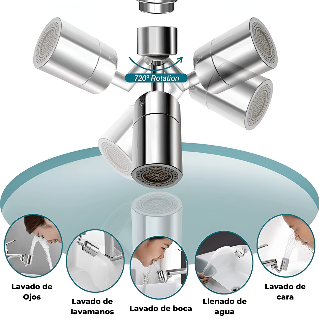 Este novedoso y práctico grifo evita cualquier salpicadura en el lavado al mismo tiempo que te brinda la comodidad y facilidad para lavar tus ojos, tú cara, enjuagar tú boca y lavar tus utensilios de cocina.