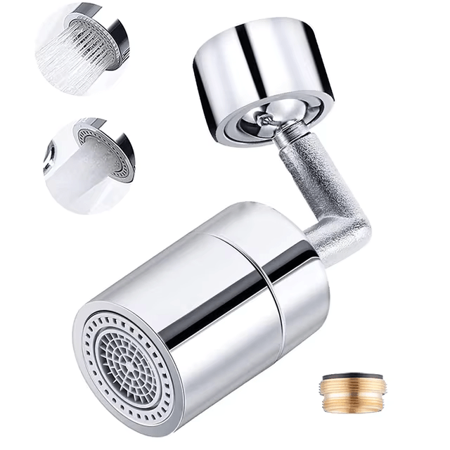 Su ángulo de rotación asegura que el flujo de agua llegue a todos los rincones, facilitando la limpieza y el enjuague.