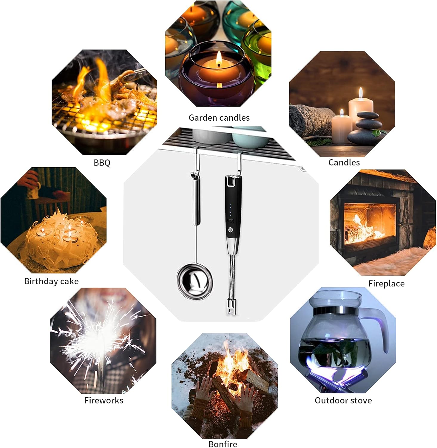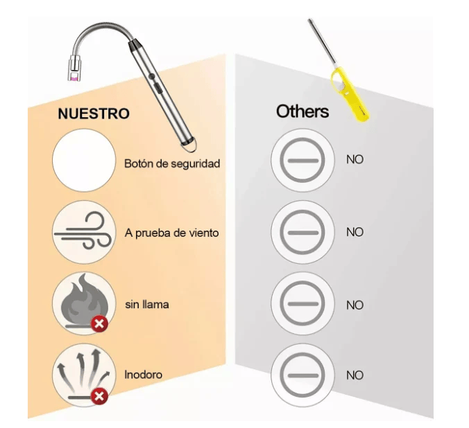 Nuestro producto es seguro, recargable y flexible con su cuello de 360º permite encender desde cualquier ángulo. Perfecto para cocinas, parrillas, camping, picnic, incienso, velas, etc. Su diseño moderno evita accidentes y el uso de butano, ideal para un hogar práctico y ecológico.
