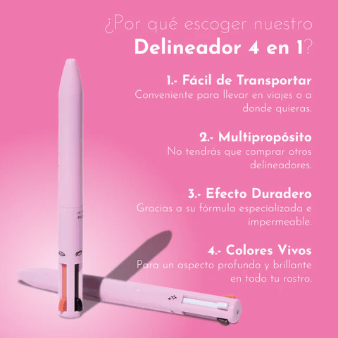 Combina la funcionalidad de cuatro productos esenciales en uno solo, con un diseño que te permitirá retocarte en cualquier lugar, en cualquier momento. ¡Haz tu pedido ahora y descubre cómo un solo lápiz puede transformar tu rutina de belleza!